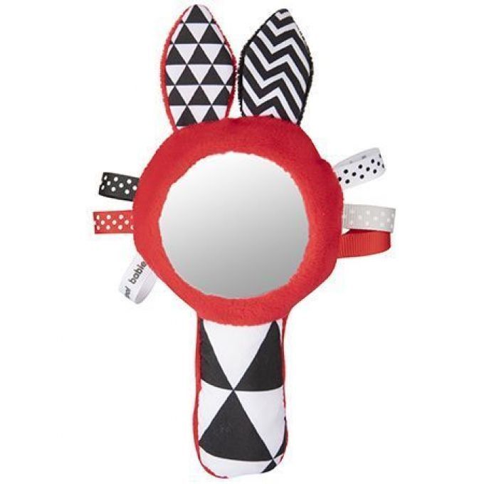Juguete sensorial de contraste: Sonajero con espejo y bocina.