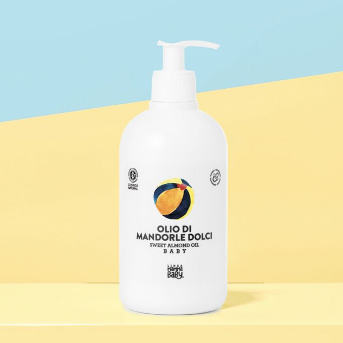 La bola, llamada Guendalina, es Aceite de Almendras Dulces Baby, para cuerpo y cabello.