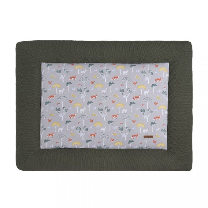 La alfombrilla Forest para parque tiene un fino patrón de punto combinado con un suave forro con estampado de bosque.