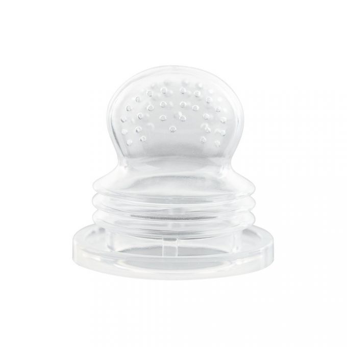 Alimentador de frutas que contribuye a la transición del bebé de la alimentación pasiva a la activa.