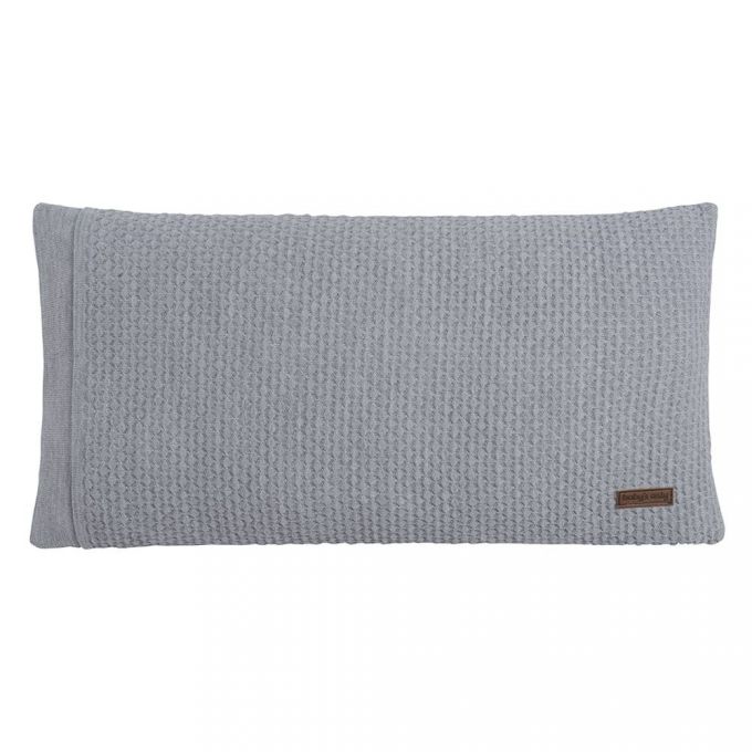Este cojín hermoso decorativo está tejido por todas partes, con la parte delantera el típico punto Cloud y la etiqueta de cuero resistente.