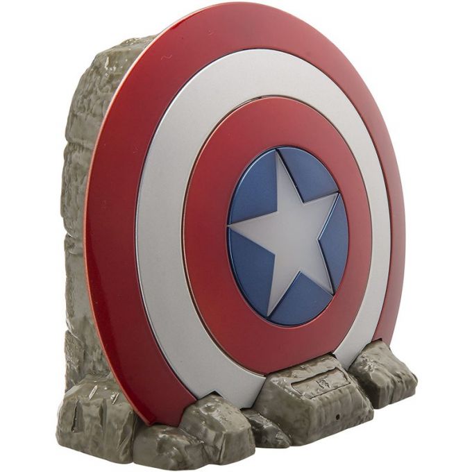 Espectacular altavoz bluetooth con diseño del escudo de Capitán América con licencia oficial de Marvel, y sistema de manos libres integrado con botón de aceptación de llamadas.
