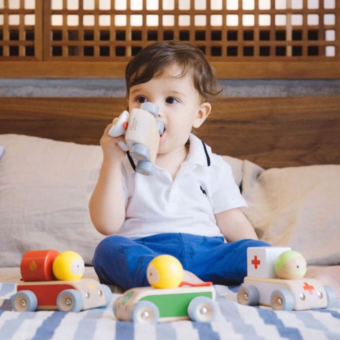 La ambulancia está diseñada con el tamaño y peso perfecto para que las manos pequeñas de los más peques la agarren y sostengan. Empujar el pequeño coche ayuda a l@s niñ@s a ejercitar la destreza de los dedos y desarrolla la coordinación ojo-mano.
