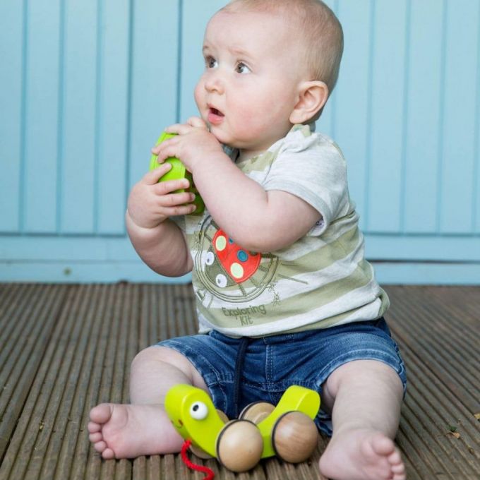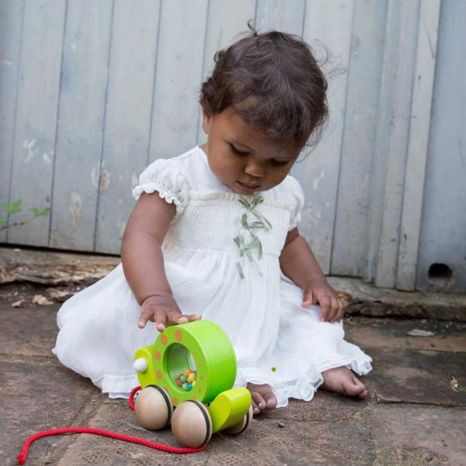 Este arrastre caracol hace que caminar sea más divertido, un amigo cuyo caparazón rueda y hace distintos sonidos para estimular a l@s más pequeñ@s.