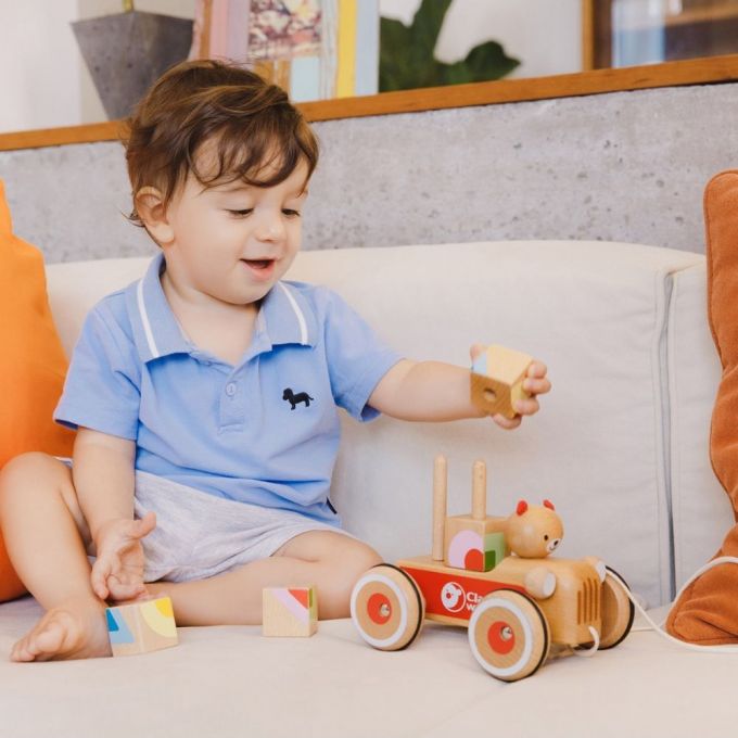 Este arrastre gatito con bloques es un juguete divertido en el que cuándo tu hij@ lo arrastre el camión se moverá tambaleante como si estuviera en una carretera con baches. Los niñ@s pueden poner los bloques a través del palo y completar distintas formas . Ayuda a desarrollar la coordinación ojo-mano, la capacidad espacial y la imaginación.