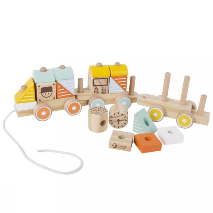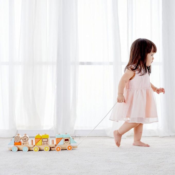 Arrastre tren con bloques de madera, es un arrastre con distintos bloques y formas extraíbles que estimulan la creatividad y mejoran las habilidades motoras de tu hij@. El juego permite diseñar y rediseñar una y otra vez distintas figuras.