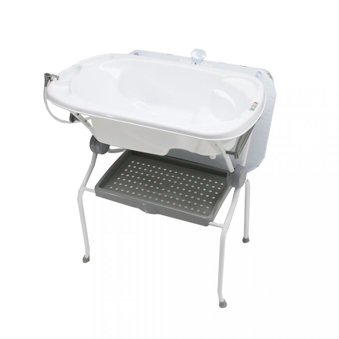 La bañera Anatómica Sobrebidé ONA está diseñada para facilitar el baño del bebé. Bañera rígida con cambiador abatible con sistema antivuelco. Chasis plegable, cubeta anatómica rígida con tapón y tubo de desagüe. Bandeja portaobjetos y pies antideslizantes. Es una bañera sobrebidé, por lo que puede colocarse encima de los sanitarios. Cierre fácil y compacto.