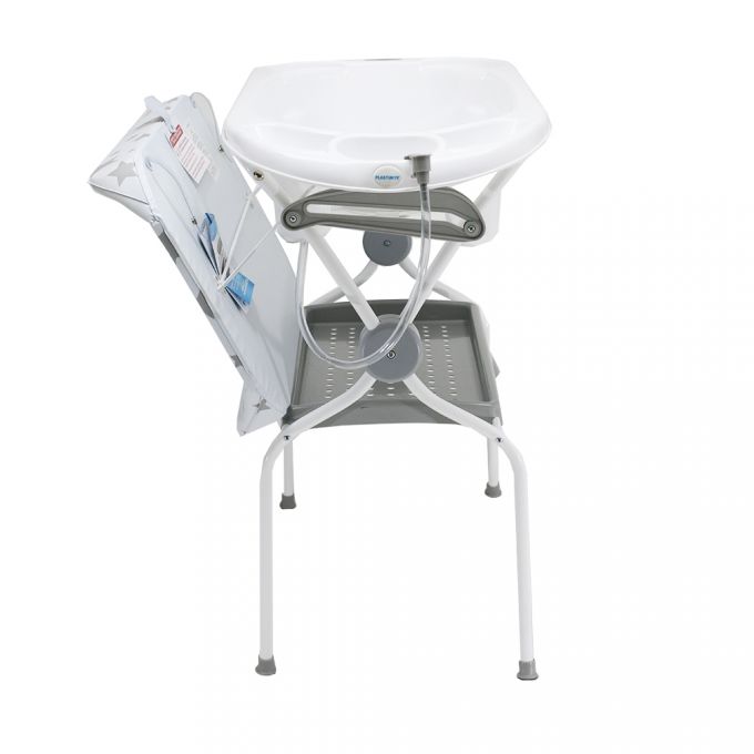 Bañera rígida con cambiador abatible con sistema antivuelco.