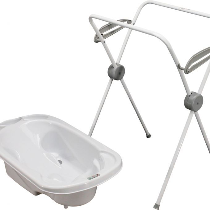 La bañera Anatómica + Soporte está diseñada para facilitar el baño del bebé. Bañera anatómica rígida con sistema antivuelco. Chasis plegable, cubeta rígida con tapón y tubo de desagüe. Pies antideslizantes. Cierre fácil y compacto.