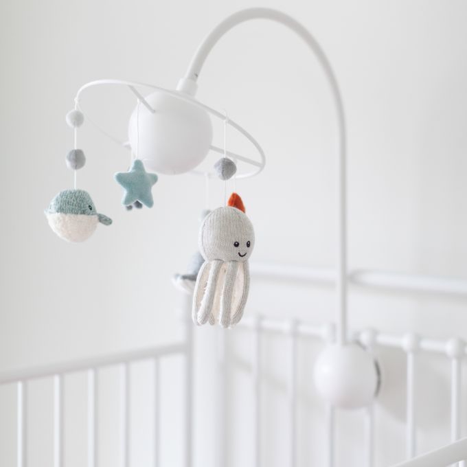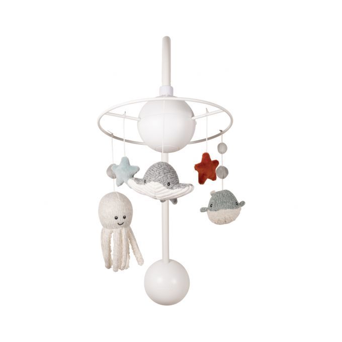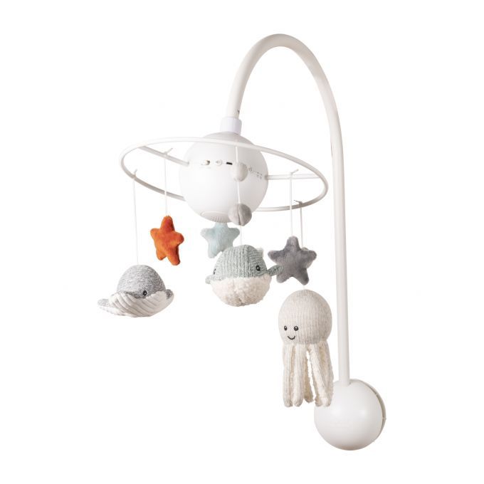 Boxmobile Ocean es un elegante boxmobile que calmará a su bebé escuchando las dulces melodías y observando a sus amigos del océano.