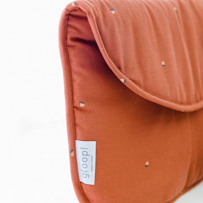 El exterior está hecho de nuestro tejido de algodón orgánico 100% certificado y el interior de poliéster. Fabricado en Portugal.