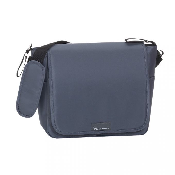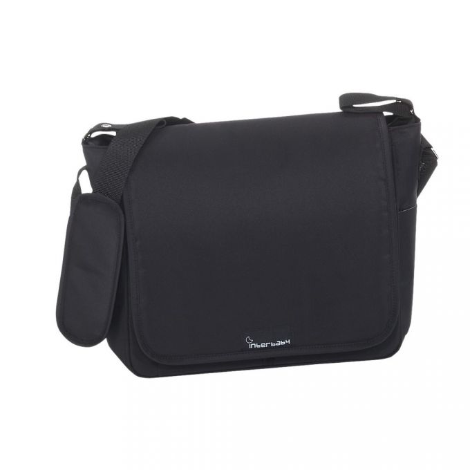 Bolso impermeable liso con Cambiador portátil para viaje, con asa larga para colgar tipo bandolera y dos cortas para colocar en el carro, dos bolsillos exteriores bajo la tapa y otro bolsillo con cremallera en la parte trasera.