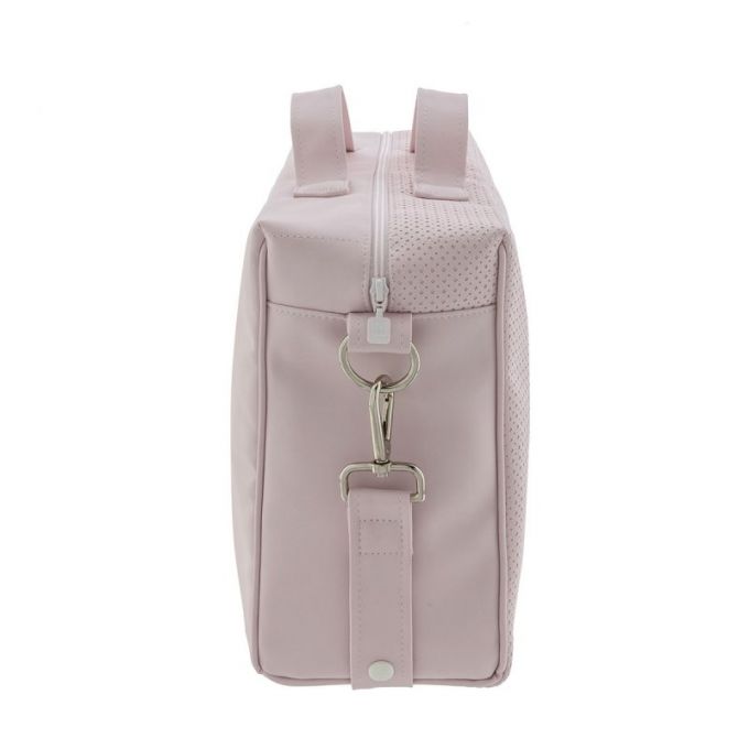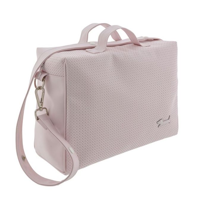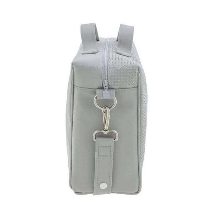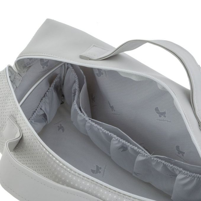 En su interior lleva bolsillos para poder organizar todo lo que el bebé necesita para salir a la calle. Su relleno es de fibras especiales para mantener su estructura después del lavado. Made in Spain.