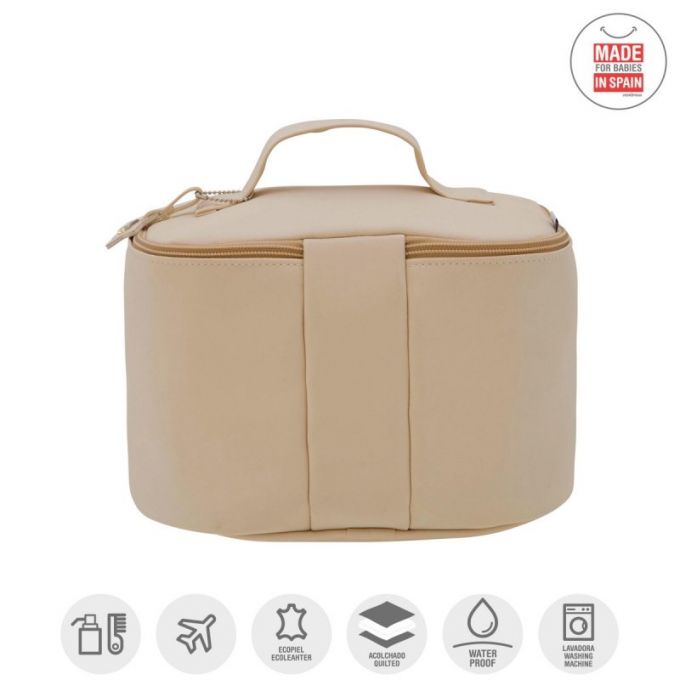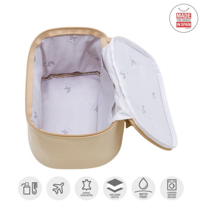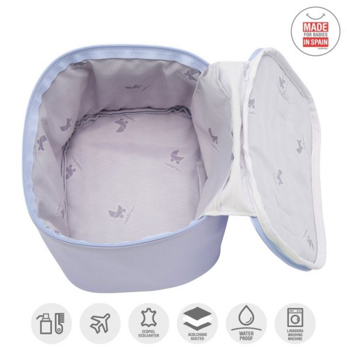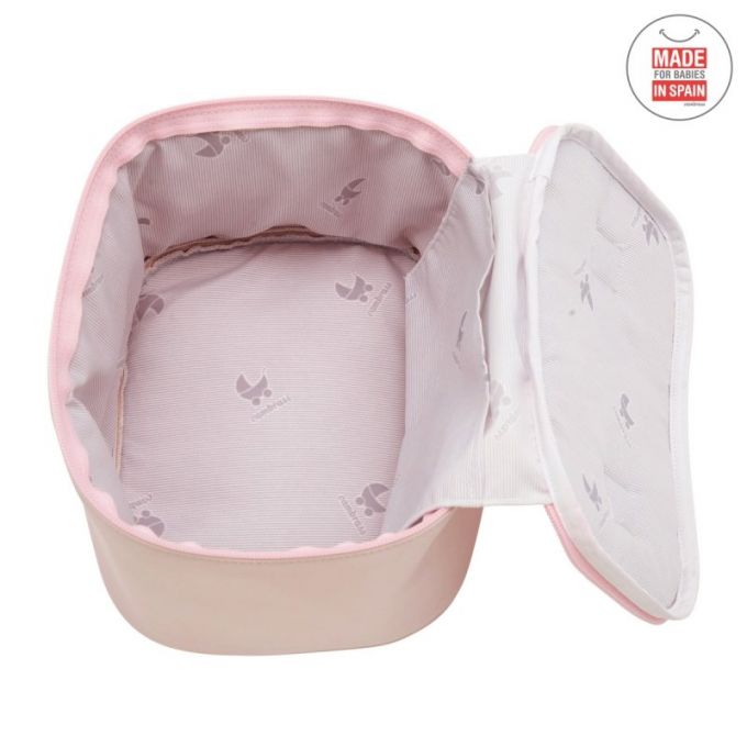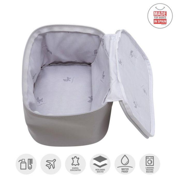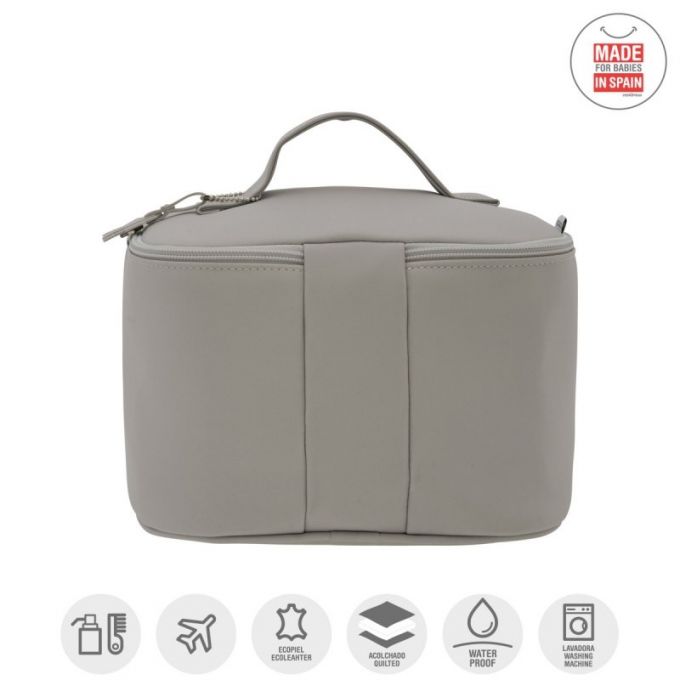 El Bolso neceser mini de Cambrass es de uso maternal y sirve para transportar los productos necesarios de uso diario para el bebé. Sus bolsillos interiores permiten guardar los objetos de menor tamaño. Cuenta con una asa superior de 30 cm. para poder llevarlo fácilmente en la mano.
