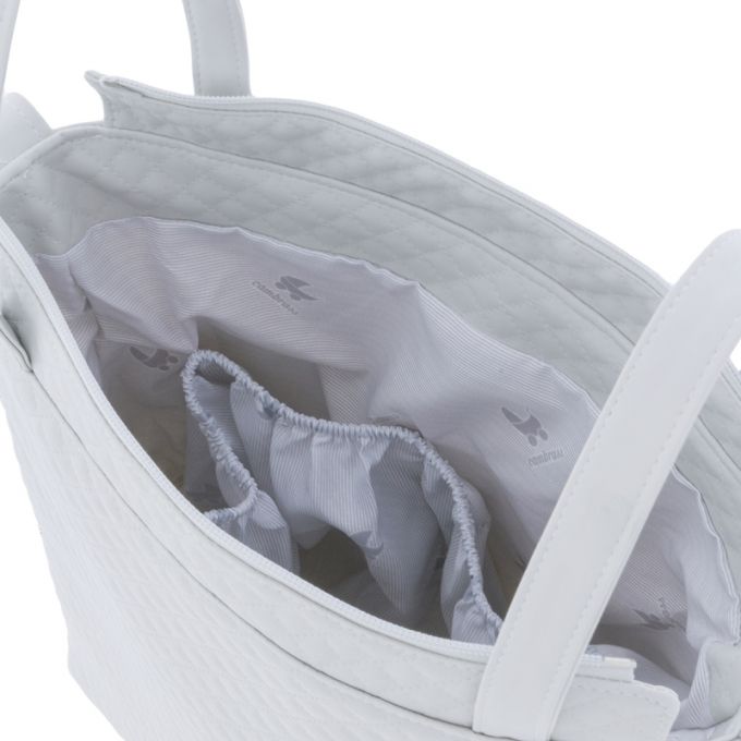 El bolso Talega de Cambrass, está diseñado con medidas perfectas, tanto para el trasporte en el carro como para la mama, este bolso lleva 2 asas que se abrochan con clips para poder colgarlo en el carro, y un asa bandolera, para que la mamá se lo pueda colgar del hombro. Sus medidas son ideales para poder transportar todo lo necesario del bebé del día a día. Su perfecta composición hace que lo podamos lavar tanto a mano como en la lavadora. El tamaño del bolso es de 12 x 40 x 35 cm.