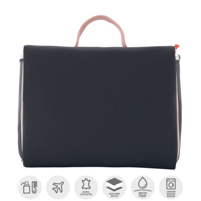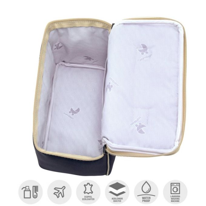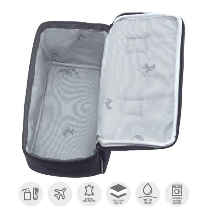 El Bolso Vanity de Cambrass es de uso maternal y sirve para transportar los productos necesarios de uso diario para el bebé. Sus bolsillos interiores permiten guardar los objetos de menor tamaño. Cuenta con un asa superior de 30 cm. para poder llevarlo fácilmente en la mano. Además su cierre con cremallera YKK de alta calidad garantiza una larga duración.