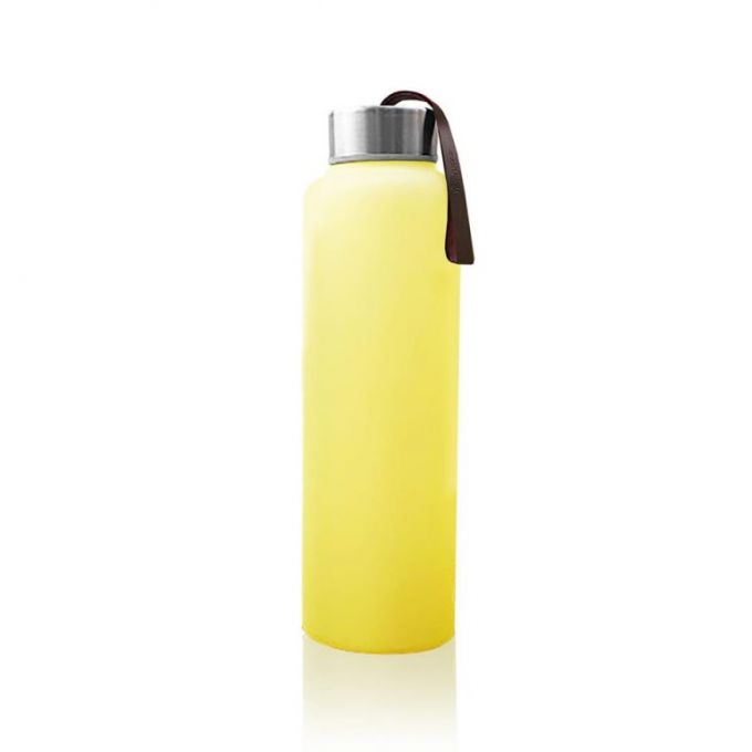 Esta botella de cristal va recubierta con una fina capa de silicona que le da mayor durabilidad.