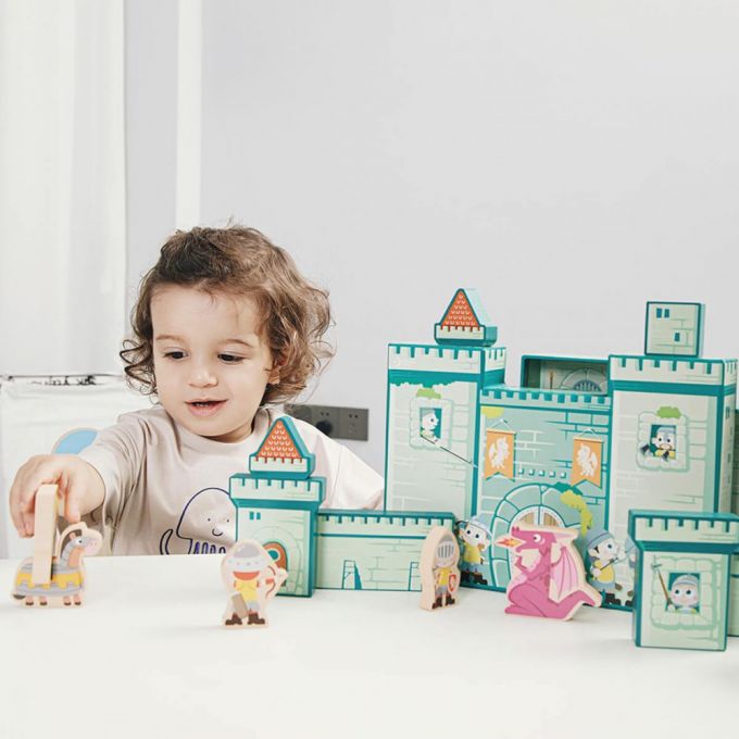 La caja de juego castillo medieval es una caja de cartón grueso que sirve de escenario tanto interior como exterior para inventarse las aventuras que tu hij@ quiera mientras juega con las distintas figuras de madera. Fomenta la imaginación y creatividad.