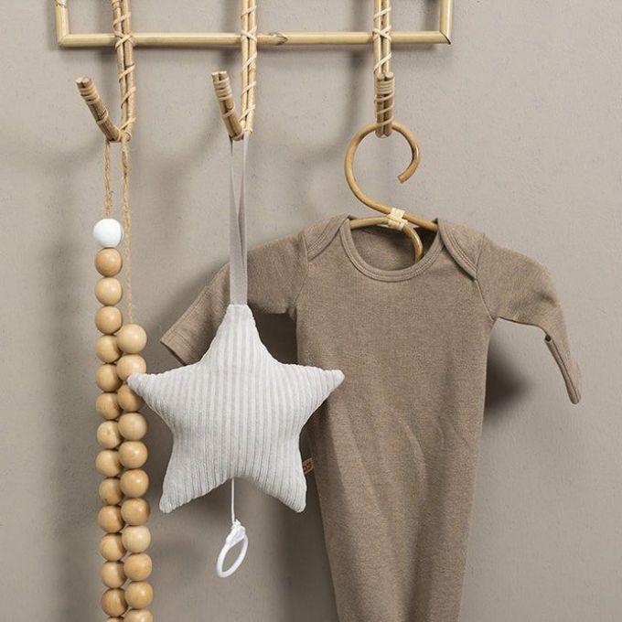 La caja de música tiene forma de estrella y reproduce la canción Twinkle twinkle little star.
