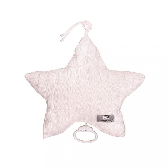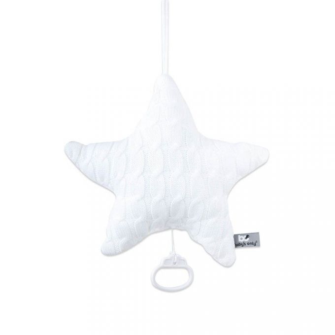 La caja de música es una decoración divertida en la habitación del bebé y se puede colocaren el parque. La caja de música se puede encender tirando del cordón. La caja de música reproduce la canción Twinkle, Twinkle Little Star. La característica estructura de cable del tejido se puede combinar fácilmente con los productos Baby's Only de líneas como Sun y Classic. La caja de música Star tiene 30 cm de altura.