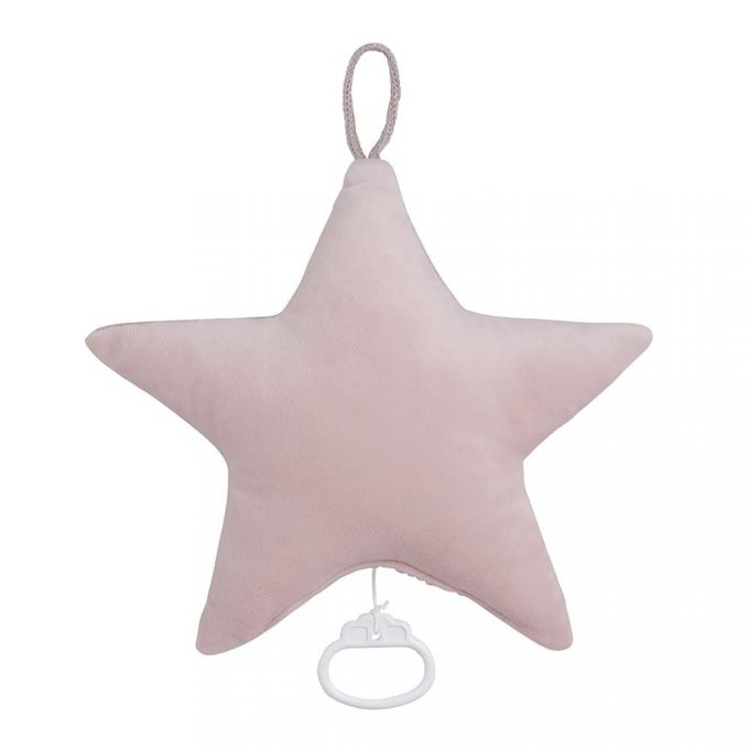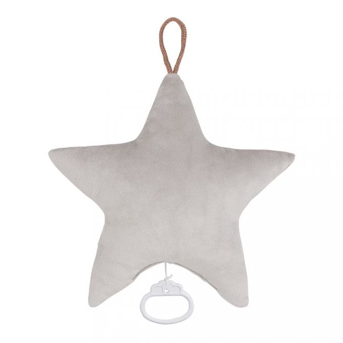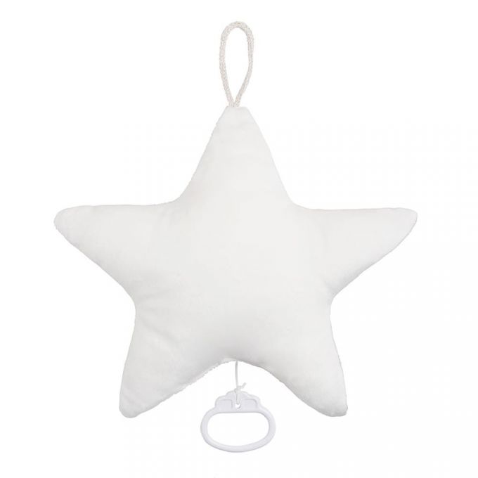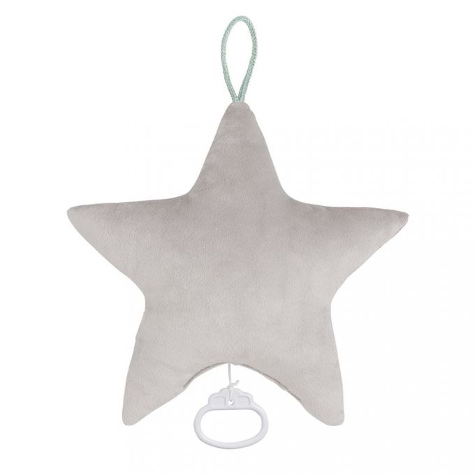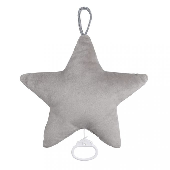 Preciosa caja de música de estrellas hecha de un material agradablemente suave. Con un tirón de la caja de música, empieza a sonar una suave melodía que acompaña suavemente a tu bebé para que se duerma. La caja de música se puede fijar fácilmente a la cuna, al corralito o a la cuna con el lazo. Un bonito elemento decorativo para la habitación del bebé o incluso para el corralito.