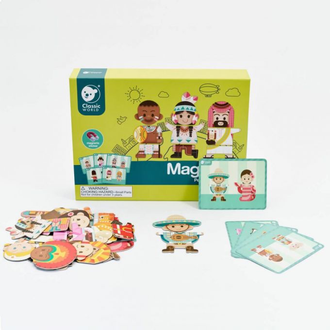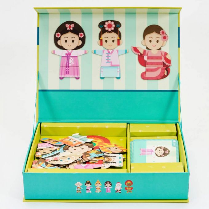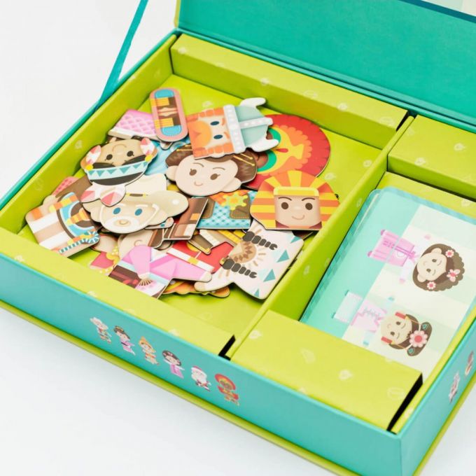 Caja magnética personas del mundo, incluye hasta 20 personajes de distintos continentes que podrás construir uniendo las distintas piezas imantadas. Tu hij@ podrá guiarse por las tarjetas o inventarse distintos personajes.