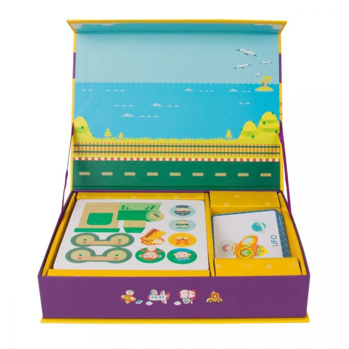 Caja magnética transporte, incluye hasta 12 tipos de transporte los cuales podrás construir uniendo las distintas piezas imantadas. Tu hij@ podrá guiarse por las tarjetas o inventarse distintos transportes.
