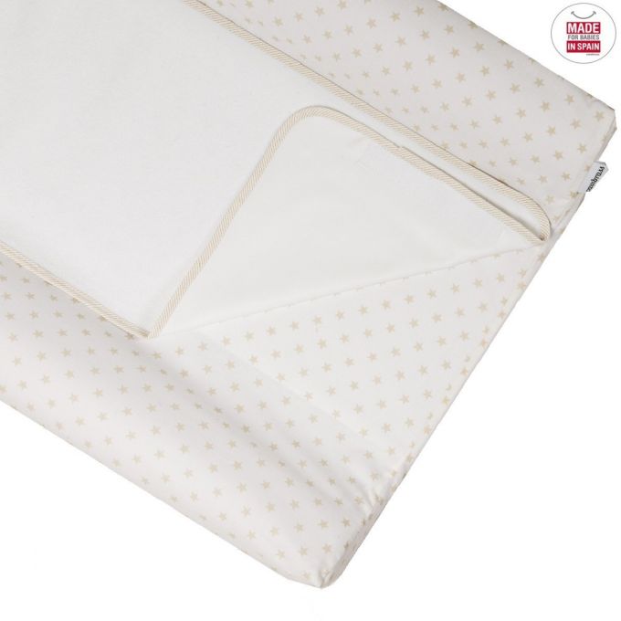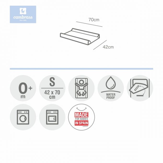 El Cambiador bañera Combi de Cambrass ofrece un confortable apoyo a la hora de cambiar al bebé. Se puede utilizar tanto sobre una cómoda o el mueble bañera, como directamente sobre la cama. La parte superior del cambiador, se adapta a éste con un práctico velcro para permitir el fácil desenfundado y lavado, con un acabado impermeable que garantiza el confort del bebé. La parte interior está fabricada en espuma plastificada de color blanco, recubierta con los tejidos de las colecciones Cambrass y coordinados con el resto de la habitación del bebé. Fabricado en España. Por Cambrass.
