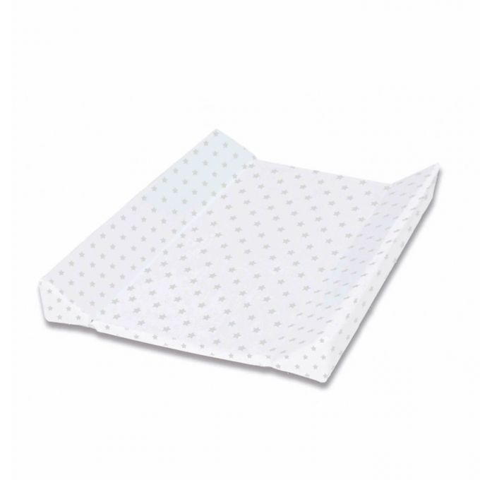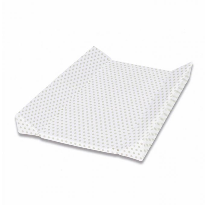 Este cambiador de cuna incluye tapizado de plástico de fácil limpieza, disponible en dos estampados: estrellas gris y Lunares beige.