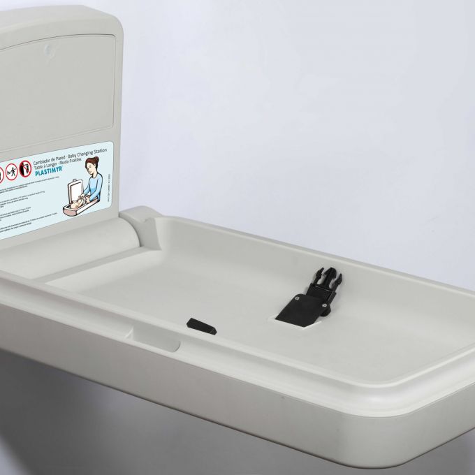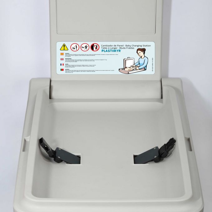 Cambiador vertical de bebés para instalar directamente en la pared. Perfecto para ser usado en espacios públicos como restaurantes, hoteles, centros comerciales, aeropuertos, edificios públicos, guarderías.