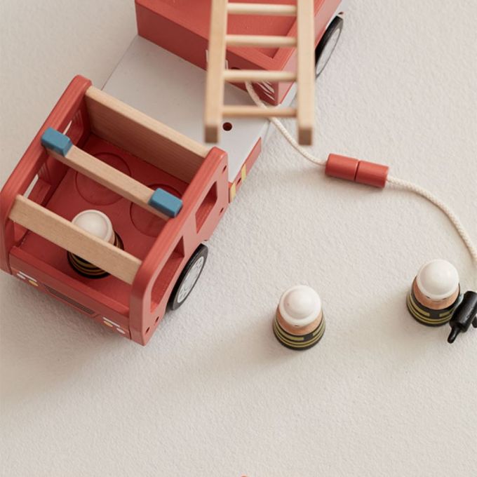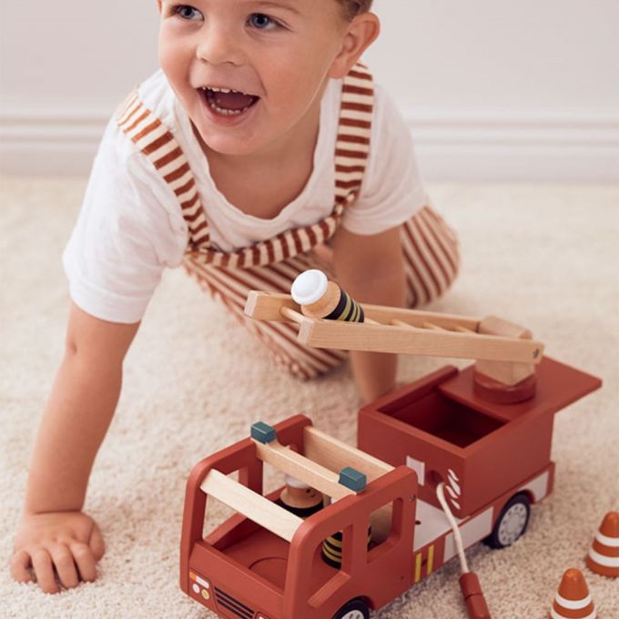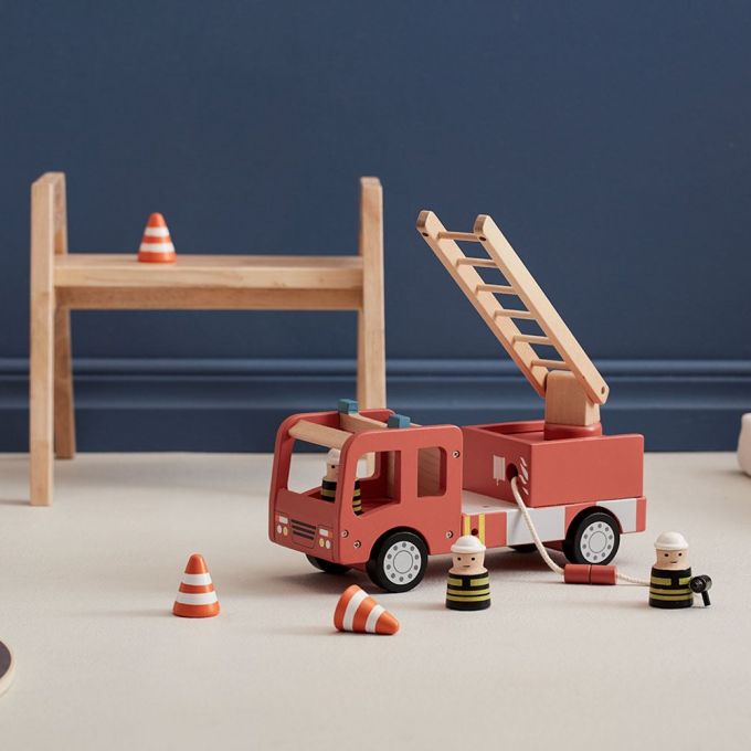 Mientras se conduce alrededor de los conos se pueden almacenar dentro del camión. Camión de bomberos en madera certificada por el FSC.