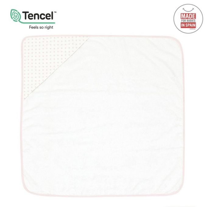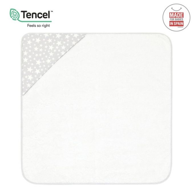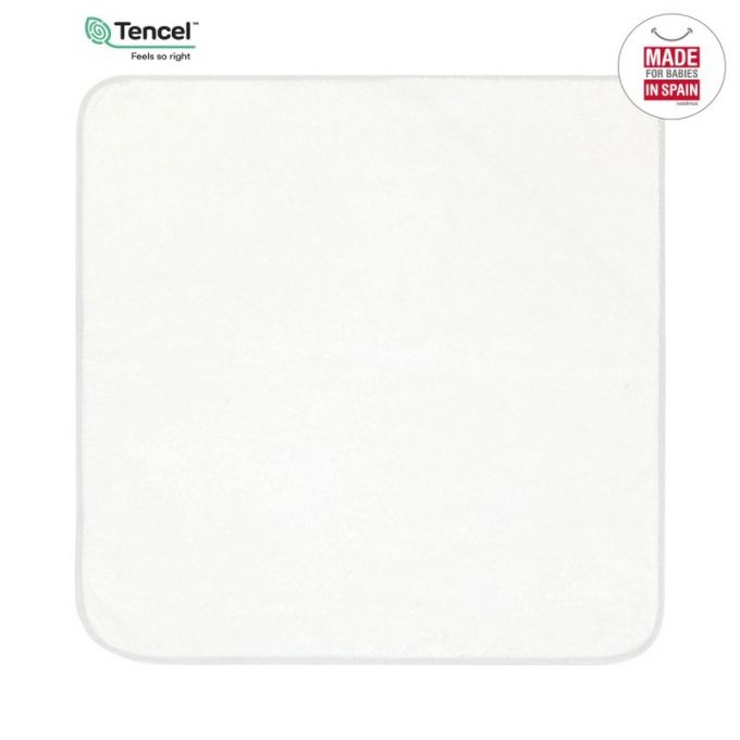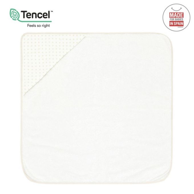 Está fabricada con fibras de TENCEL. Fibras botánicas y ecológicas, que evitan la aparición de alergias o irritaciones en la piel del bebé y ofrece la máxima suavidad al no retener la cal del agua durante el lavado. Su capucha, cuyo interior está forrado con rizo, ayuda a mantener al bebé tapado conservando en todo momento su calor corporal tras el baño.