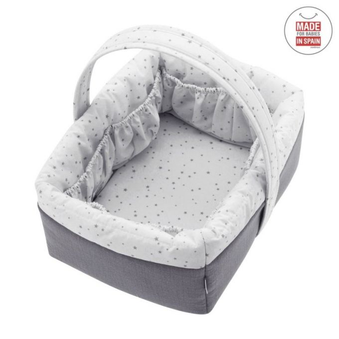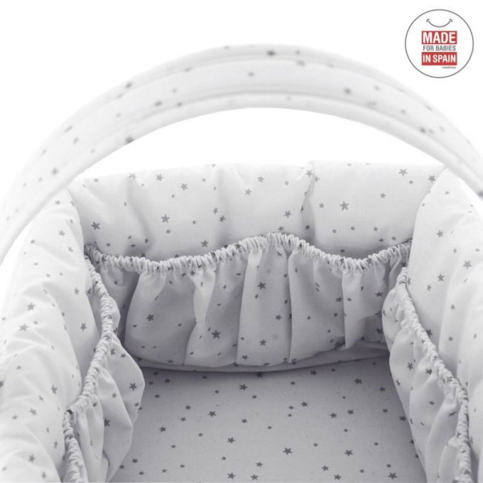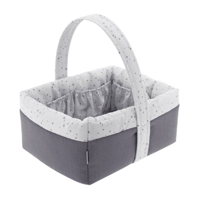 La cesta canastilla acolchada de Cambrass, disponible en todos los coordinados de la colección Cambrass, sirve para guardar los artículos de higiene del bebé (colonia, peine, jabón).