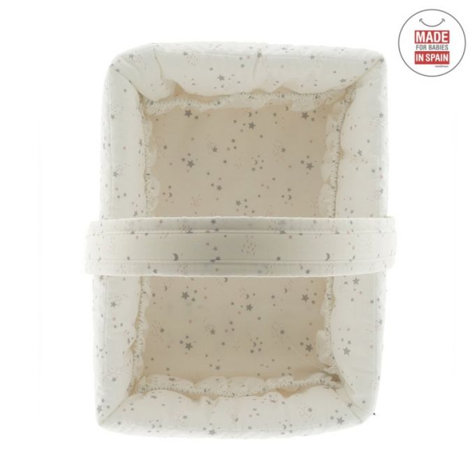 La cesta canastilla acolchada de Cambrass, disponible en todos los coordinados de la colección Cambrass, sirve para guardar los artículos de higiene del bebé (colonia, peine, jabón& ). Su tamaño es de 29 x 22,5 cm. y su altura de 29 cm. e incluye 4 prácticos bolsillos interiores para guardar los objetos más pequeños y tenerlos siempre al alcance.