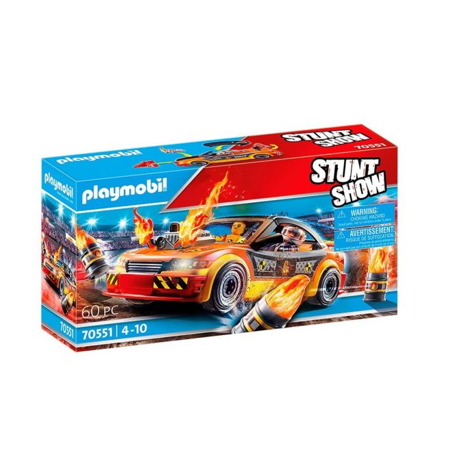 Contenido: 1x PLAYMOBIL Stuntshow Crashcar, set con 60 piezas con instrucciones: 1 coche, 2 figuras, 57 accesorios.