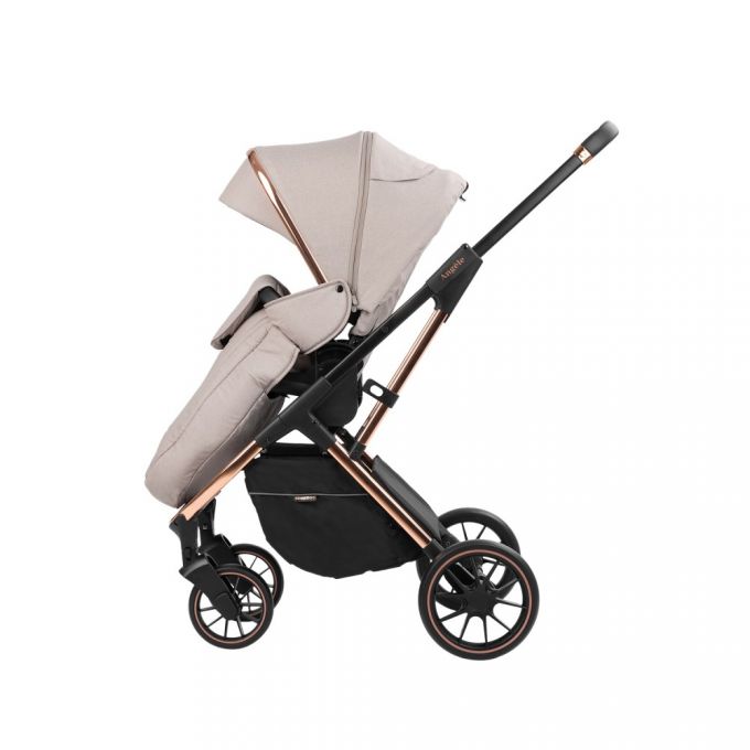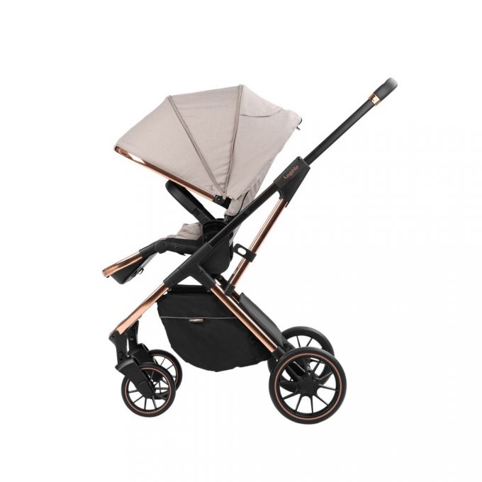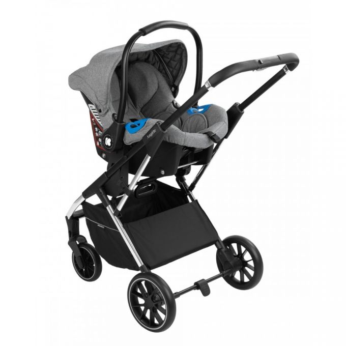 Accesorios incluidos: Cubrepiés en el capazo y en la unidad de asiento; adaptadores; mama bag que se transforma en un cambiador.