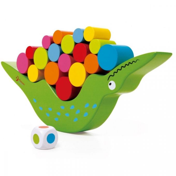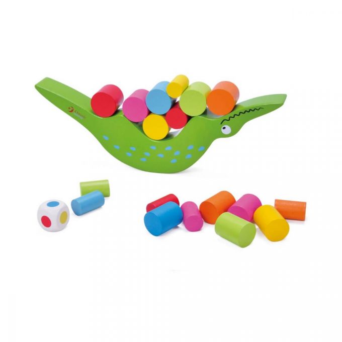 El cocodrilo en equilibrio es un juego de bloques de madera coloridos los cuales vas colocando para equilibrar correctamente al simpático cocodrilo. Un divertido juego de enseñanza para mejorar la coordinación ojo-mano, la motricidad fina y el reconocimiento de formas.
