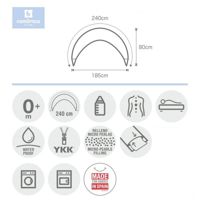 El cojín luna de Cambrass, es un complemento ideal durante el embarazo y un artículo imprescindible durante la lactancia. Su diseño es muy parecido a la luna creciente. En los meses del embarazo, su relleno especial de micro perlas, lo hace 100% adaptable a cualquier etapa del embarazo. Luego en la lactancia, es perfecto.