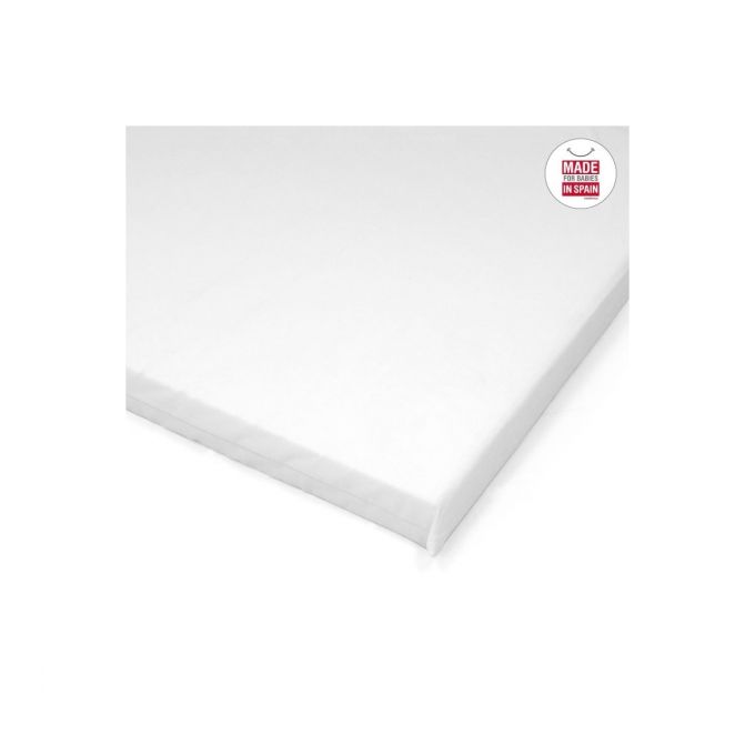 Colchón minicuna de espuma, es indeformable y adaptable a todas las minicunas del mercado. La espuma está formada por un tejido de 50% Algodón - 50% Poliéster, para evitar la prematura degradación de la espuma. Fabricado en España.