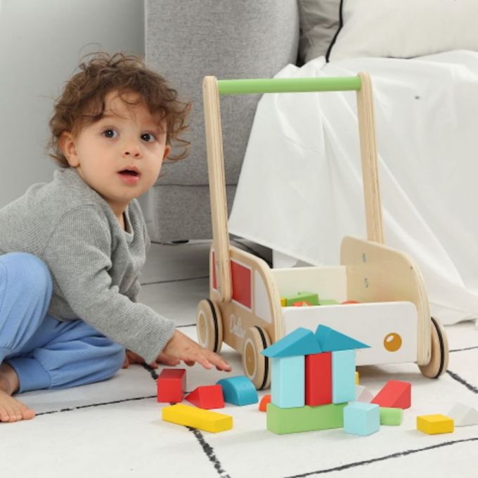El correpasillos furgoneta con bloques, es un andador para bebés con forma de camión que transporta distintos bloques de colores que animan a tus hij@s a aprender a caminar de forma segura. Jugar con estos bloques desarrolla la coordinación mano-ojo y la creatividad de tu hij@.
