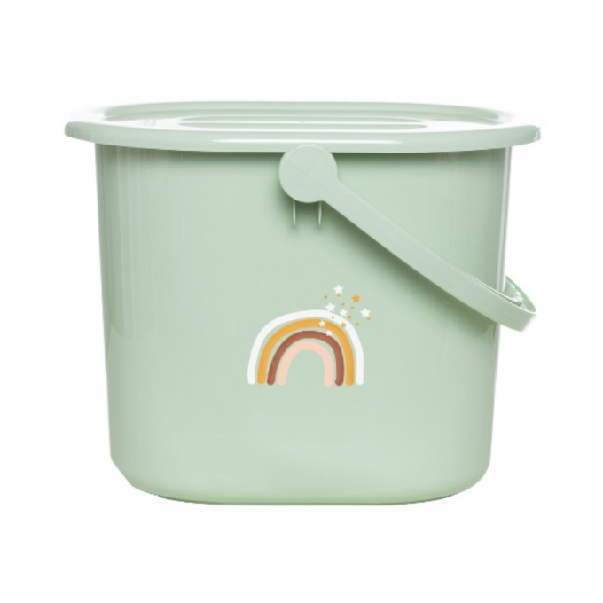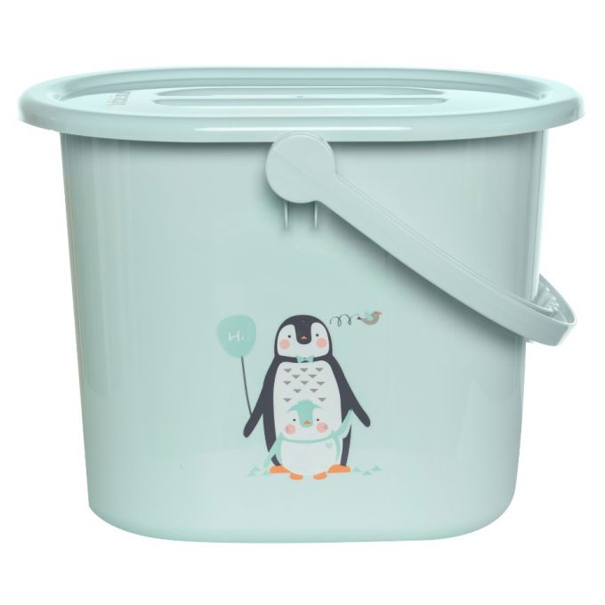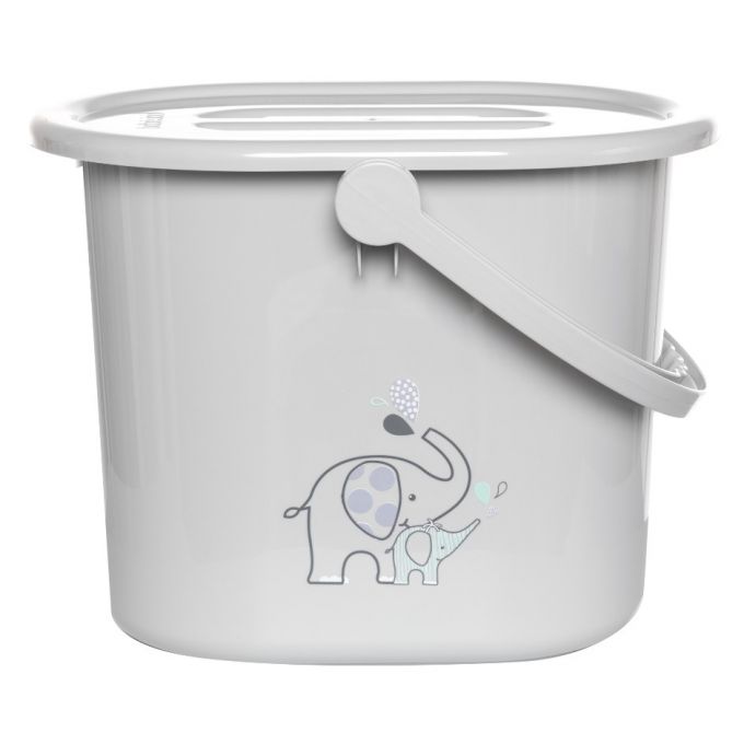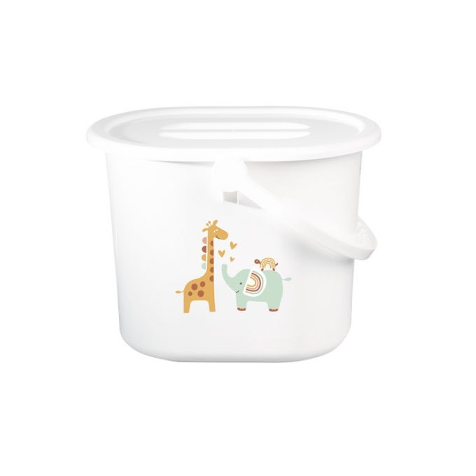 El cubo de pañales de bébé-jou es multifuncional. Claramente puedes usarlo como un contenedor de pañales. Es un económico y cómodo pañalero con asa. El cubo para pañales tiene un asa integrada en la parte inferior del cubo para pañales, lo que hace que llenar y vaciar la bañera del bebé sea pan comido. Además, el contenido de 14 litros coincide exactamente con el contenido de la bañera para bebés, la bañera Thermo y la bébé-burbuja de bébé-jou. El cubo para pañales está disponible en muchos colores y diseños aptos para bebés y está equipado con una tapa.