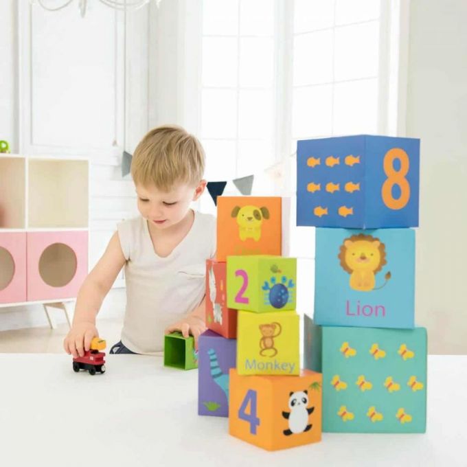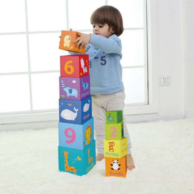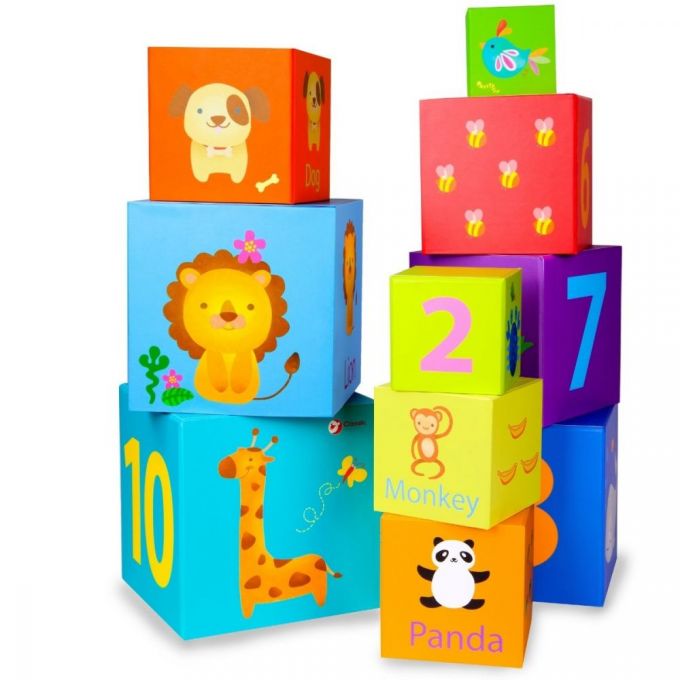 Cubos apilables animales y números incluye 10 cubos de diferentes tamaños cubiertos con adorables animales, palabras, números y objetos. L@s niñ@s aprenderán a leer, identificar números y contar así como ayudará a desarrollar la motricidad gruesa, la observación y la imaginación!