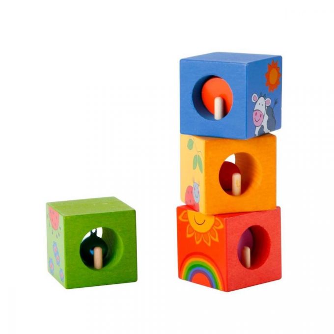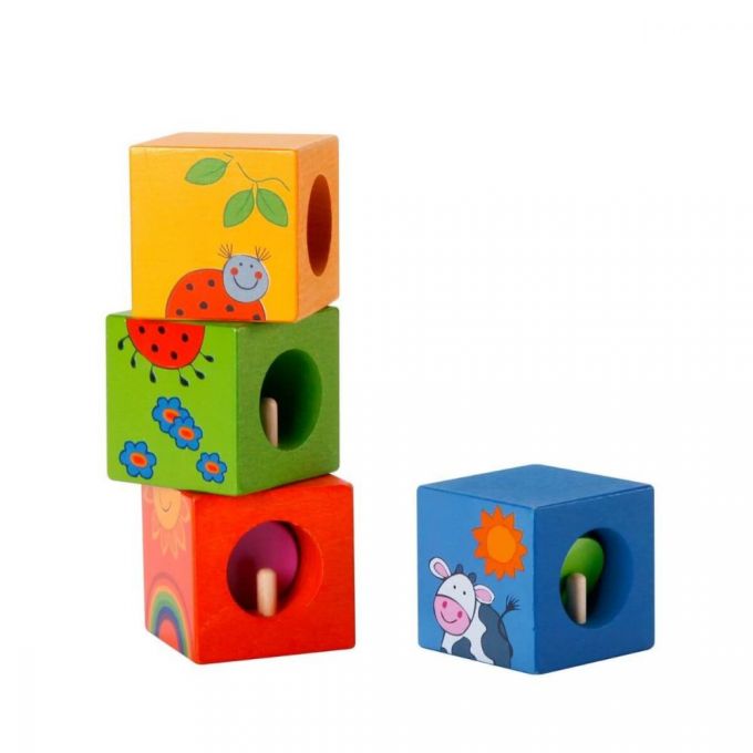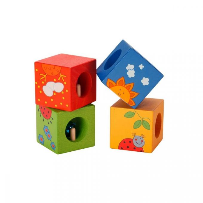 Los cubos de descubrimiento animales se componen de 4 bloques de 6 lados con dibujos de animales. Cada bloque tiene una sorpresa oculta en el interior: 1 campana, 1 bola giratoria, 1 rodillo de madera, cada uno de ellos permite crear 1 sonido diferente. Ayuda a desarrollar la atención visual y la motricidad fina.