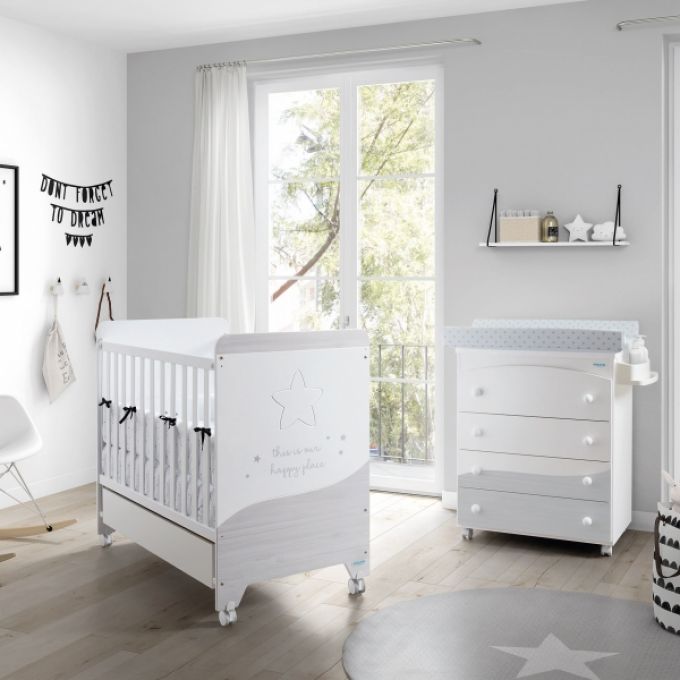 Para la limpieza de la cuna, recomendamos pasar un paño seco para retirar el polvo o ligeramente humedecido en agua.