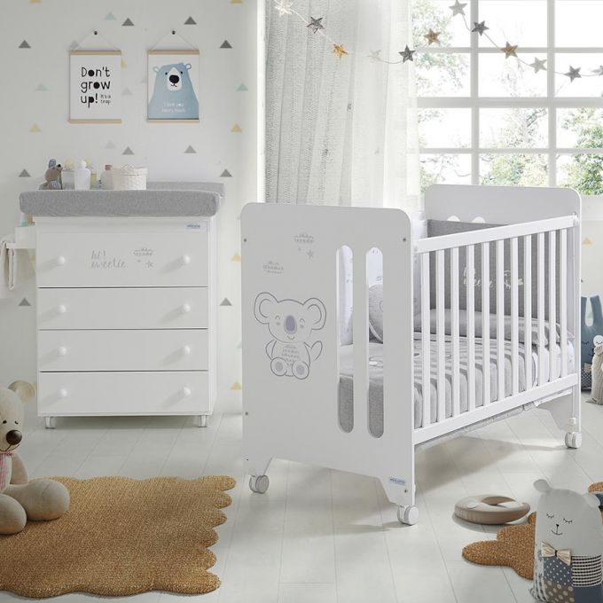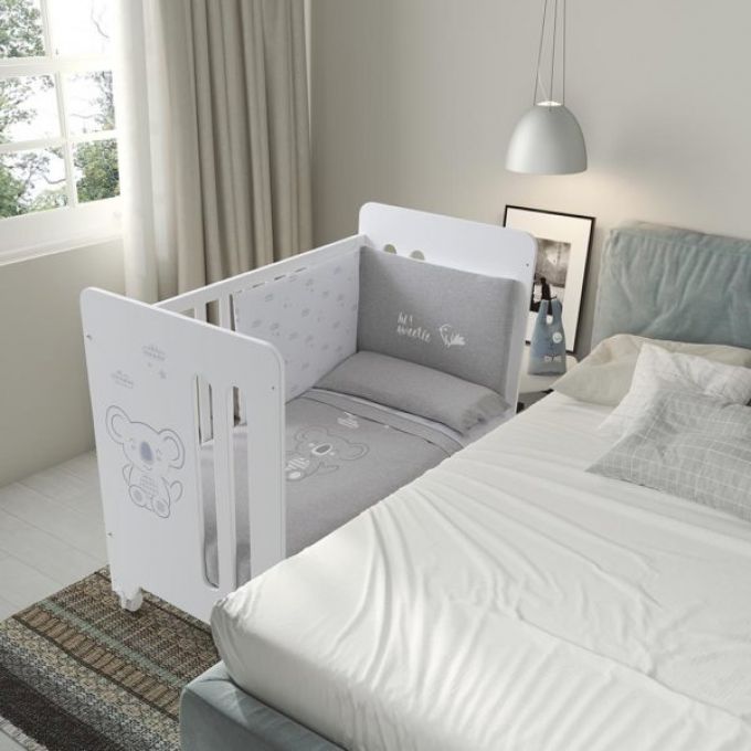 La cuna Koala de Micuna tiene un adorable diseño que llega para enamorarnos. Esta cuna se puede convertir en colecho, camita y escritorio, gracias a los complementos opcionales de Micuna. Combínala con la bañera o el textil a juego.