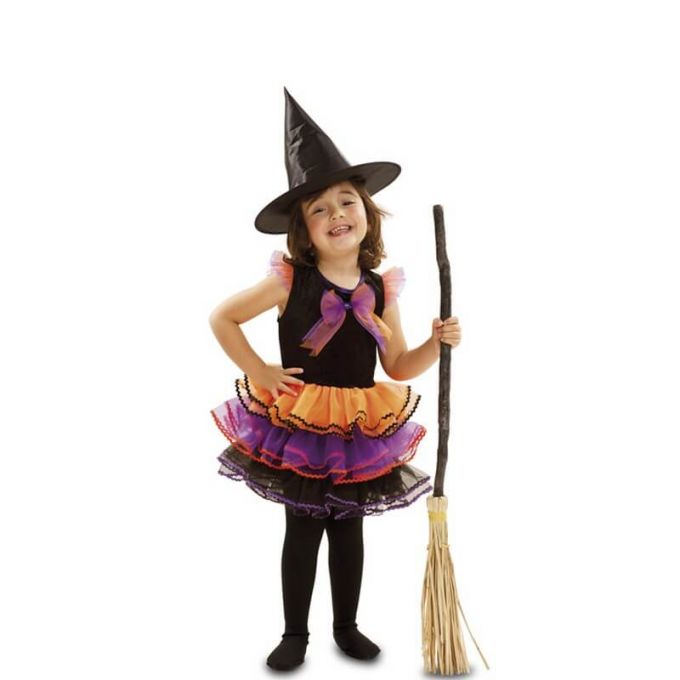 Disfraz de Brujita o Bruja Fantasía para bebés y niñas en varias tallas para Halloween. Se compone de vestido y sombrero.