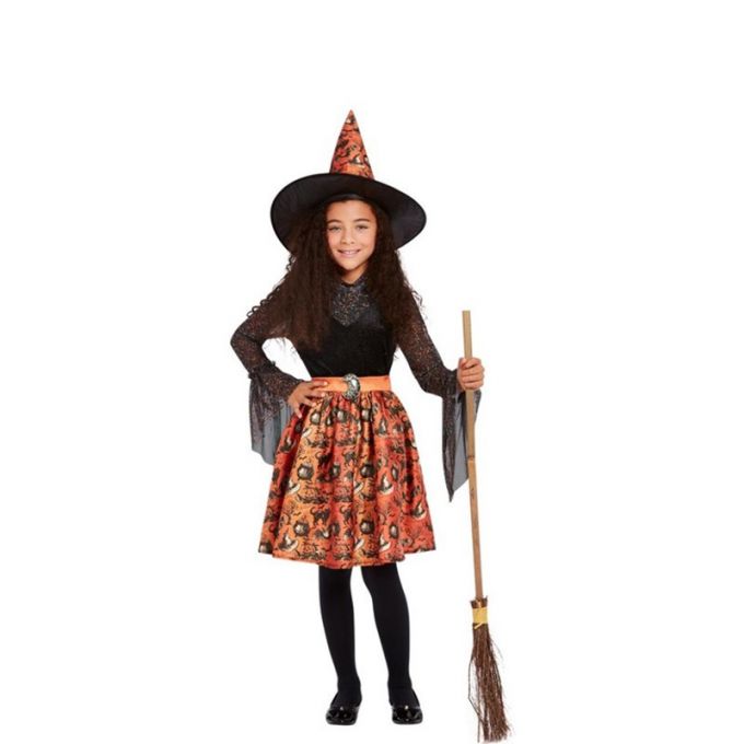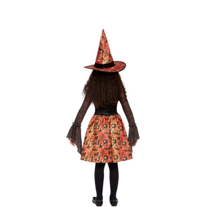 Disfraz de Bruja Vintage Naranja para niña. Incluye Vestido y sombrero. No incluye Escoba ni calzado.