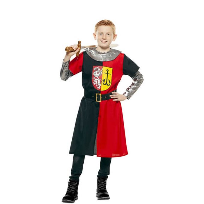 Disfraz de Cruzado, Caballero o Guerrero Medieval Rojo y Negro para niño.