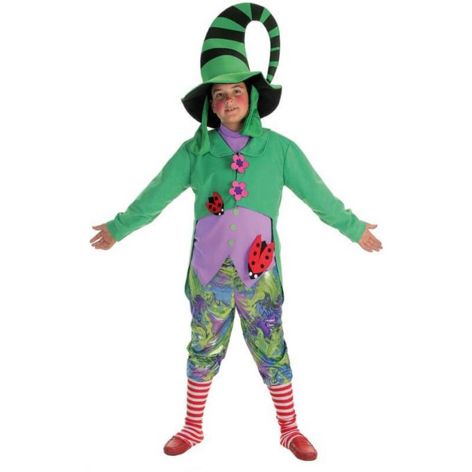 Disfraz de Duendecillo, Duende, elfo o goblin verde para niño en varias tallas. Incluye pantalones, frac, chaleco, sombrero y calcetines.