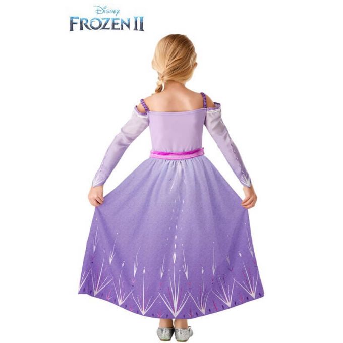 Disfraz de Elsa Morado de Frozen 2 para niña. Incluye vestido con tirantes y cinturón adjunto.